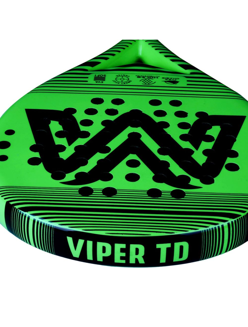Get started in the game of Padel with absolute control. Easy power comes with a soft playing feel, tolerance, and forgiveness in the Viper TD, an all-rounder that will supercharge the game. With a fiberglass-hitting surface for a softer feel and touch and a larger sweet spot for more tolerance and forgiveness. Oversized, teardrop-shaped all-rounder to supercharge the game. The Viper TD is ideal for casual players who are ambitious to improve, as well as for intermediate players.